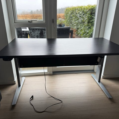 Stort lækkert hvidt hæve/sænke skrivebord, står som nyt