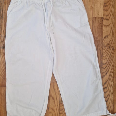 med skridtlængde på 57 cm. Har bindebånd forneden