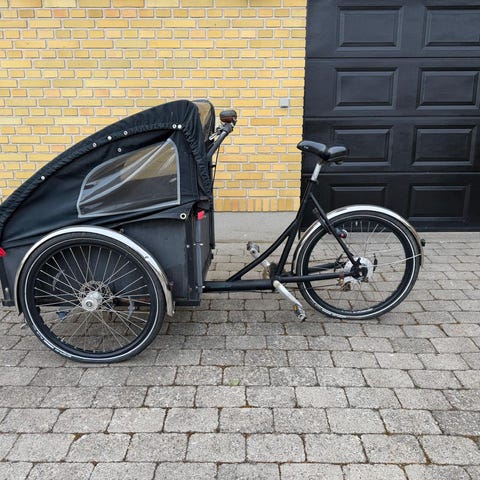 Cyklen er en Christiania Cykel E-Light fra 2024 med 8 gear, og den kører stadig rigtig godt. Vi har passet godt på den og sørget for, at alt fungerer som det skal. Nu er tiden kommet til, at den skal videre til en ny børnefamilie, som kan få lige så meget glæde af den, som vi har haft.