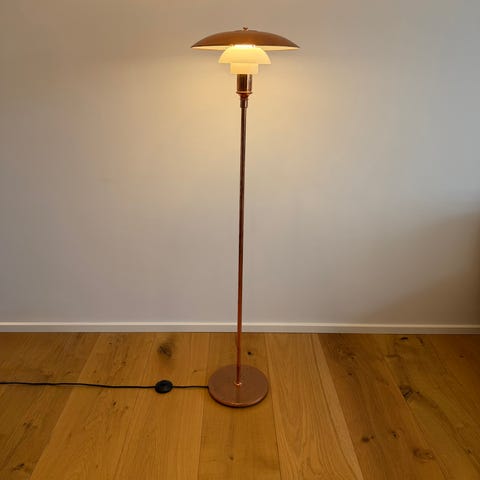 Poul Henningsen 3,5-2,5 bordlampe kobber limited edition 2015.Med stel og overskærm af kobber, mellem og underskærm af opalglas.
