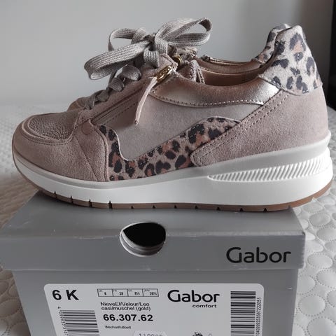 Flot ny læder Gabor sneakers i guld farve, med større. Den har en høj hvid sål.