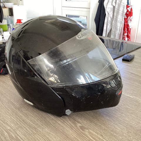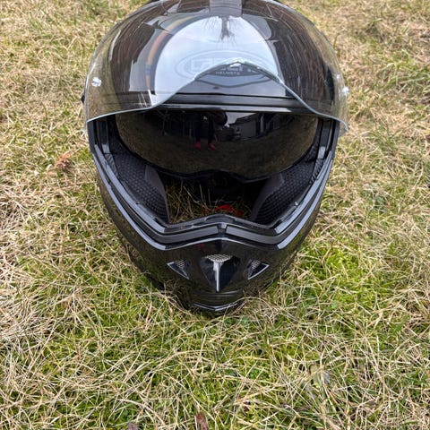 Caberg Justissimo GT motorcykelhjelm i størrelse S, passer til hovedomkreds 55-56 cm. Hjelmen er sort med klart visir og indbygget solbriller og integreret ventilationssystem. Vægt ca. 1750 g. Leveres med original Caberg hjelmpose til opbevaring og transport.