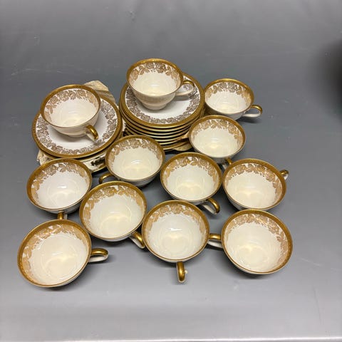12 vintage Bavaria Germany porcelænskaffekopper med ægte guldforgyldning.