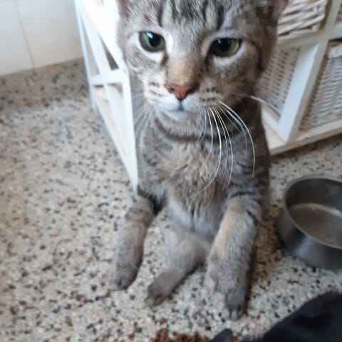 Tage er opvokset som en del af familien med børn og vores andre katte og er van til dagligdagen og det som følger med.