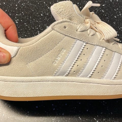 Adidas Campus sneakers til piger i str. 39. Skoene er grønne med hvide striber og hvid sål. Overdelen er i ruskind med snørelukning. Modellen er egnet som hverdagssko til børn og unge, og kan bruges både til skole og fritid.
