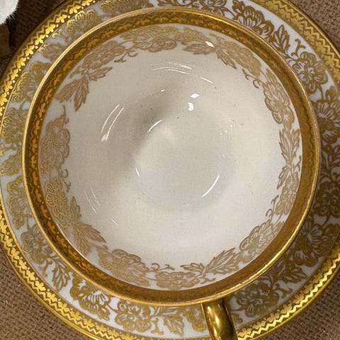 12 vintage Bavaria Germany porcelænskaffekopper med ægte guldforgyldning.