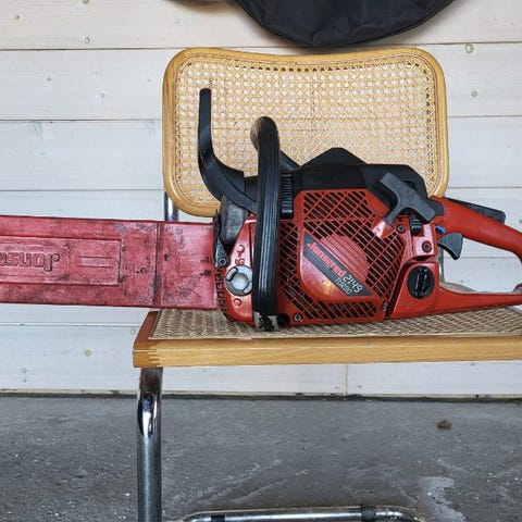 God og velholdt sav, starter og kører godt, varme i håndtag, monteret med god 15" svær og kæde
