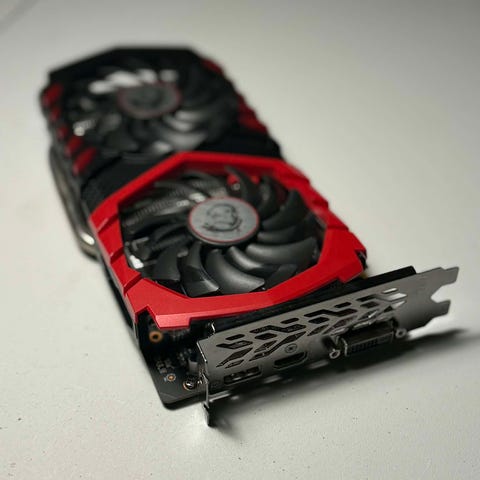 MSI GeForce GTX 1050 Ti OC grafikkort med 4GB GDDR5 hukommelse.