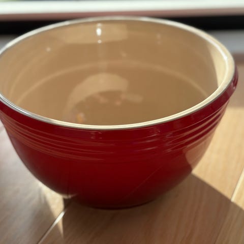 Le Creuset røreskål med hældetud rød stentøj
