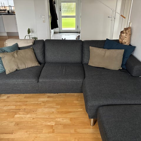 4-personers sofa med højrevendt chaiselong sælges