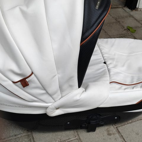 Stork lift i mørkegrå/sort med lysegrå for med hvide stjerner. Aftagelig kaleche og forlæder. Traümeland madras medfølger, samt et stræklagen. Indvendigt liggemål 32x75 cm. Udvendige mål: 35x77 cm. Kan foldes flad for transport eller opbevaring. Rigtig pæn stand.