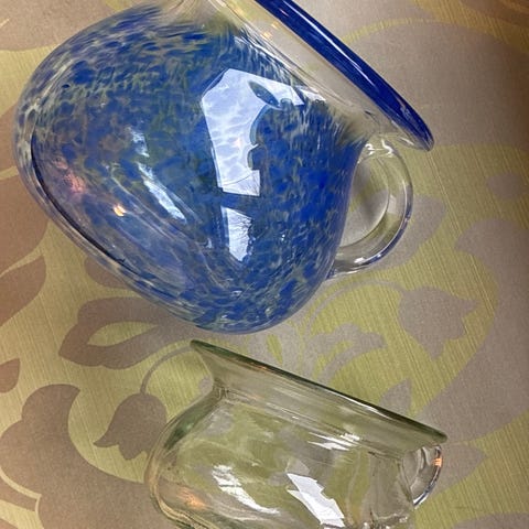 Glas, Glaspotte , Presset glas, Fin lille glaspotte i blåt glas
