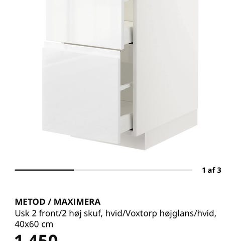 Fine Metod-skabe fra IKEA med Voxtorp højglans hvid-låger.