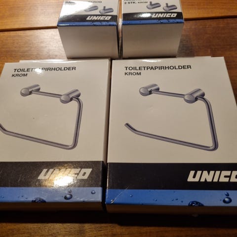 Træ og metal knagerækker og toiletpapir holder