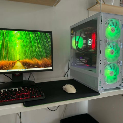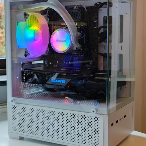 Alt er installeret i et CORSAIR Crystal Series kabinet i tempereret glas. Der er masser af lækkert RGB lys, i både blæsere og grafikkort som kan kontrolleres via software.
