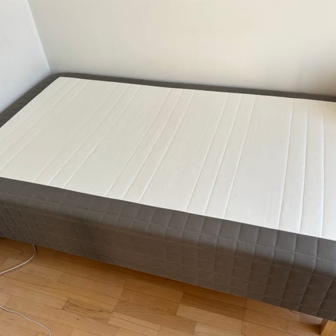 Boksmadras fra Ikea (SKÅRER) incl. topmadras (TUDDAL) og ben.