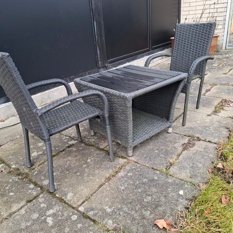 IKEA børne havemøbelsæt rundt bord og 2 hvide stole metal