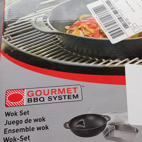 Weber Wok grillindsats i metal med en diameter på 47 cm. Wokken er rund med høje sider og to håndtag, og er designet til brug på kuglegrill med 47 cm rist. Velegnet til tilberedning af wokretter, grøntsager og mindre stykker kød direkte på grillen. Leveres i original emballage med beskyttende indlæg.
