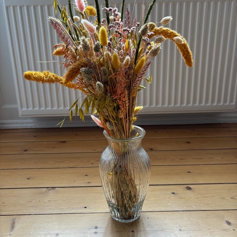 Et par af blomsterne hænger lidt med hovedet, men ellers i pæn stand.