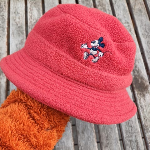 2 stk. ens DISNEY bøllehatte, str. 1-3 år, udført i beigefarvet fløjl med motiv af MICKEY MOUSE, fra ZARA. Hattene fremstår i meget pæn stand.