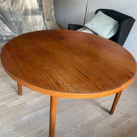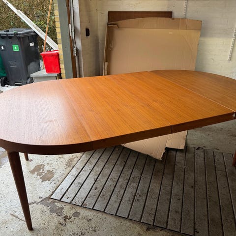 Tillægspladerne er ubehandlede og fremstår med flere brugsspor end selve bordet.