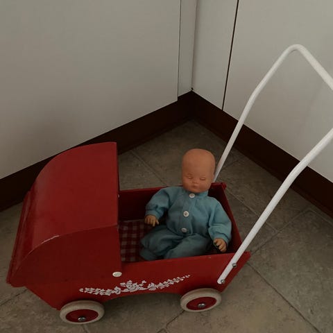 Ældre træ Dukkevogn 50 år gammel