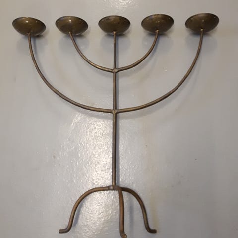 Vintage lysestage med flere arme. Klassisk lysestage i mørk metalfarve med plads til 5 stearinlys. Velegnet som borddekoration eller til placering på hylde eller vindueskarm i stue, spisestue eller andre opholdsrum.