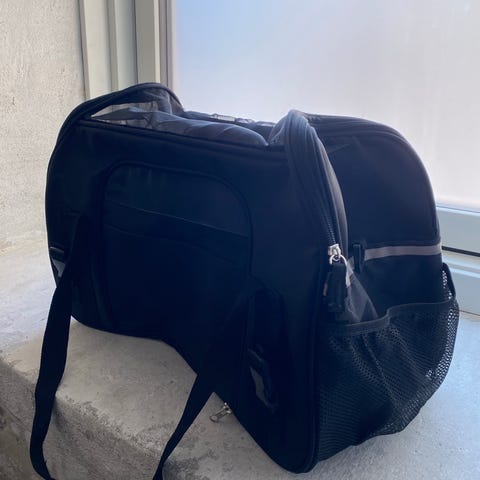 Fin og nem hunde taske til at have hunden med på farten, med massere af “net” så der kommer rigeligt med luft til hunden når den er i tasken.
