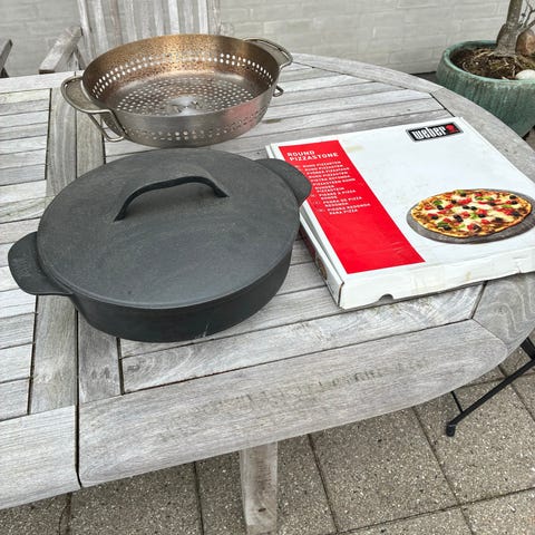 Weber Original lille rund pizzasten med bageplade til brug på grill. Sættet består af en rund pizzasten og en metalbageplade/bakke, der placeres på grillristen. Velegnet til tilberedning af pizza og andre bagte retter på grillen. Passer til udvalgte Weber-grillmodeller i mindre størrelse.