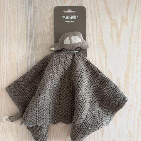 Little Dutch nusseklud formet som et krammedyr. Forsiden er i blød, rillet tekstil i lyseblå nuancer med små mønstre, bagsiden i blød brun plys. Nussekluden har dyrehoved og små arme og ben, samt små stofmærker i kanten, som barnet kan røre ved. Velegnet som kramme- og tryghedsklud til mindre børn.