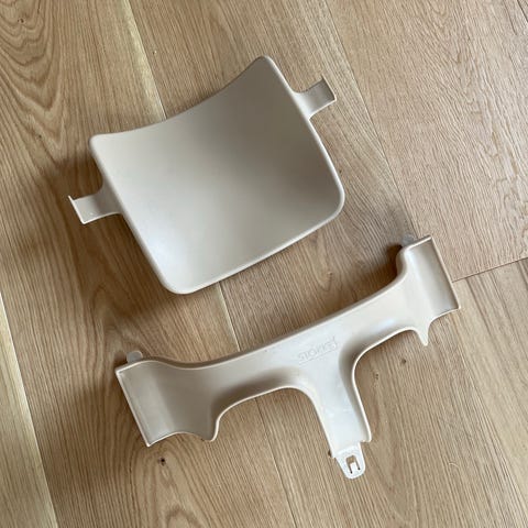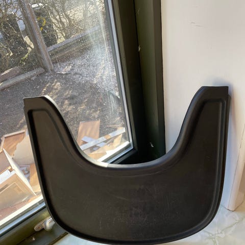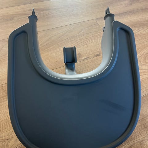 Stokke højstol bøjle i sort plast. Sættet består af en frontbøjle med integreret mavebøjle samt en aftagelig rygstøtte, der monteres på højstolen. Delene er egnet som ekstraudstyr eller reservedele til en Stokke højstol. Fremstillet i hård plast, der er let at rengøre med en fugtig klud.