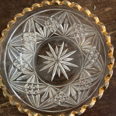 Intakt skål med takker i lyseblå glas.