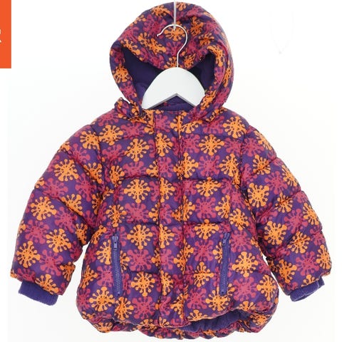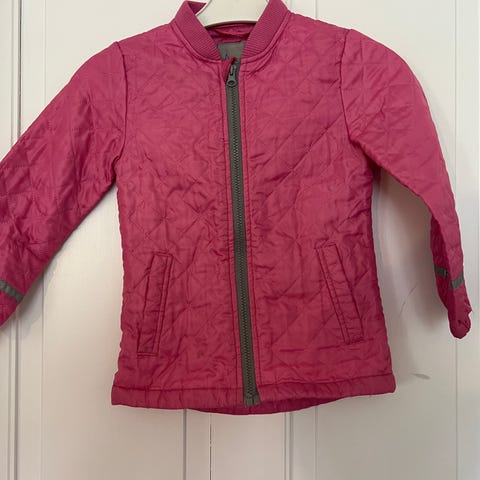 Jakke med quiltet mønster og lynlås foran. Jakken har ribkant ved kraven og manchetterne. Der er stjernemønster på albuerne.