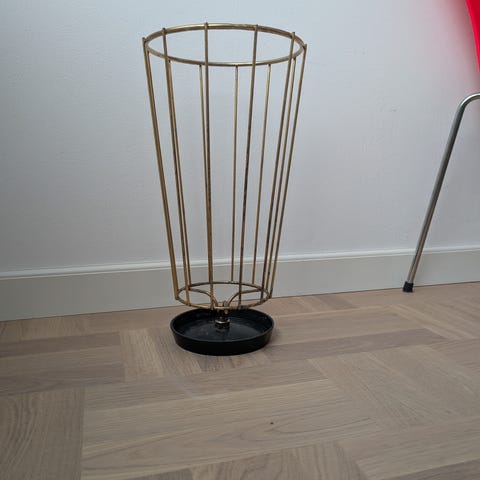 Guldbelagt messing paraplystand fra Italien, anslået periode 1930–1940, højde 61 cm, bredde 30 cm, dybde 27 cm, i pæn brugt stand med mindre aldersmærker og pletter, reliefmotiv med jagthund. Klik på den blå "gå til varen" knap, for at købe eller byde på denne vare. Den samlede pris vil blive vist inden du afgiver dit bud.