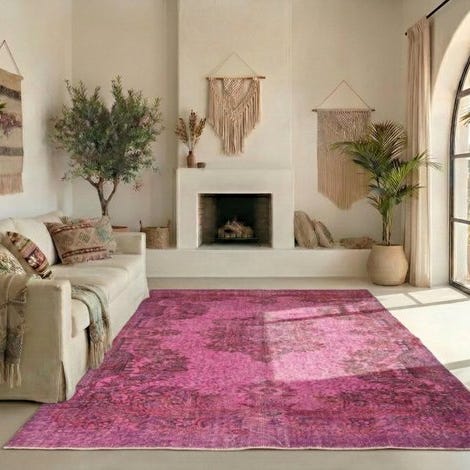 Tyrkisk håndlavet lyserød vintage tæppe, håndknyttet af uld på bomuld, 215 × 115 cm, fra det 21. århundrede, i meget god stand, professionelt renset, med certifikat. Klik på den blå "gå til varen" knap, for at købe eller byde på denne vare. Den samlede pris vil blive vist inden du afgiver dit bud.