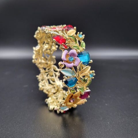 Joan Rivers Spectacular “Garden of Forever Love” Guldtonet emalje i flere farver med østrigske krystaller i blomsterdesign armbånd
