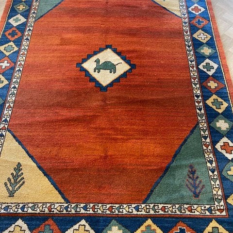 Kaschmar tæppe, maskinlavet uld-på-bomuld, Tyrkiet, 155 cm lang og 83 cm bred, 21. århundrede, professionelt renset og generelt i god stand. Klik på den blå "gå til varen" knap, for at købe eller byde på denne vare. Den samlede pris vil blive vist inden du afgiver dit bud.