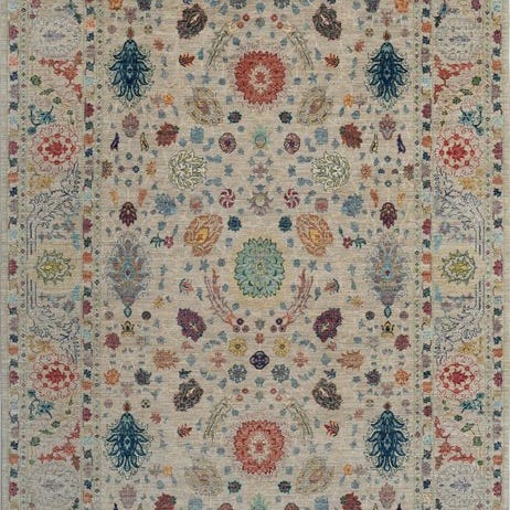 Gennem det fint udarbejdede allover-mønster virker tæppet levende, uden at virke rodet – et ægte blikfang for bolig- og arbejdsrum.