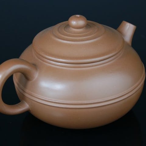 Meget smuk trefodet tepot med låg af Yixing-ler