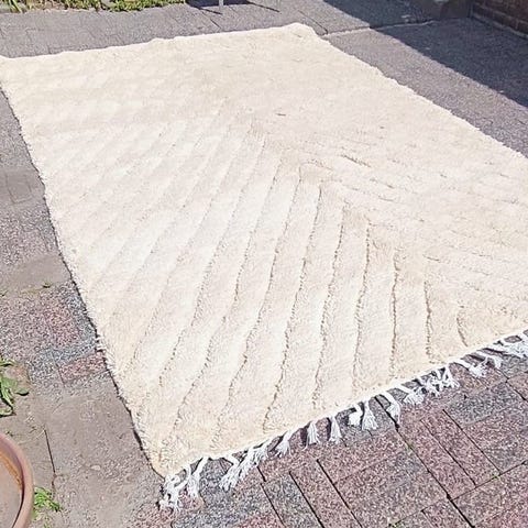 Bring den unikke charme af berberske traditioner ind i dit hjem med dette smukke håndlavede tæppe fra Marokko.