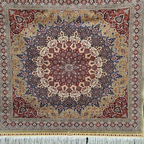 EN Strålende og autentisk Hereke-silke tæppe, håndvævet i Tyrkiet med enestående håndværk og kunstnerisk finesse. Fremstillet udelukkende af naturlig silke på en silke- kæde- og weft, viser dette tæppe den karakteristiske glans og raffinement, som adskiller de bedste Hereke-tæpper.