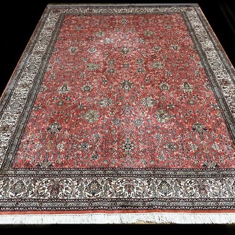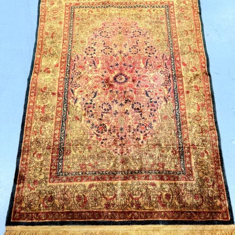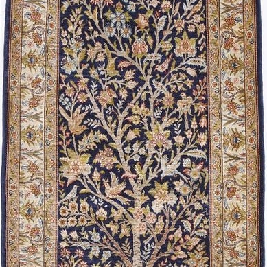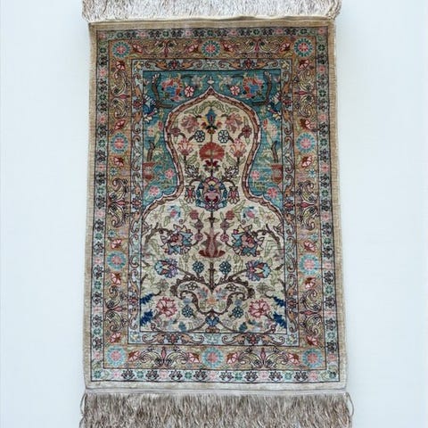 Dette tæppe i lille format afspejler mestreveerens håndværk hos Hereke-væverne, som siden det 19. århundrede har produceret silkehofkvalitetstæpper til det osmanske palads. På grund af det kompakte format og det fine mønster er det ideelt til at fremvise som dekorative vægtæppe