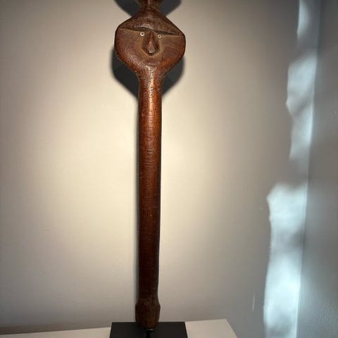 Skønt vintage Oceanisk Polynesisk Easter Island Rapa Nui udskåret fiskestav med Birdman-tegn