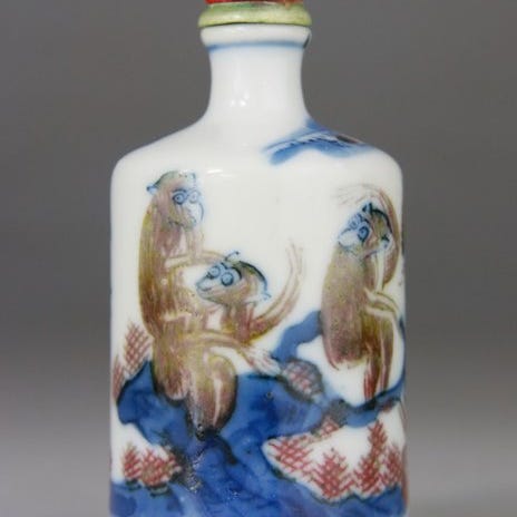 Meget smuk kinesisk snuffflaske i ægte rød cinnabarlak, udhugget