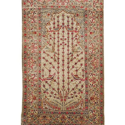 Vi præsenterer et enestående Hereke-tæppe fra Tyrkiet af silke over silke, håndvundet i 1940-1960 udført med en finhed og en kvalitet uden sammenligning.