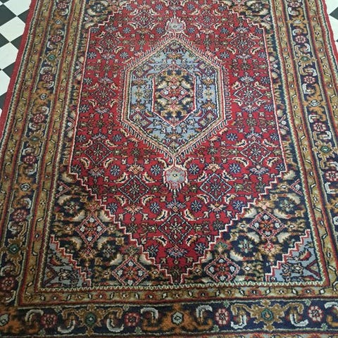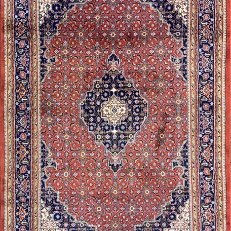 Origin : Unikt håndknyttet Indo Bidjar-tæppe med smukke farver