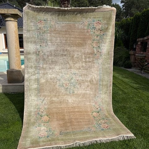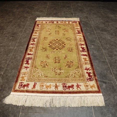 Oprindelse : Unikt håndknyttet kinesisk tæppe med smukke farver.