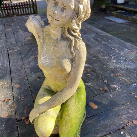 Alderen på haveornamenter i sten kan være vanskelig at fastslå præcist. Dette eksempel er sandsynligvis fra Showa-perioden (1926-1989). I meget god original tilstand, med forventet overfladeslid, der er i overensstemmelse med udendørs placering. Se venligst fotografierne for et tydeligt indtryk af tilstanden.