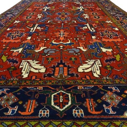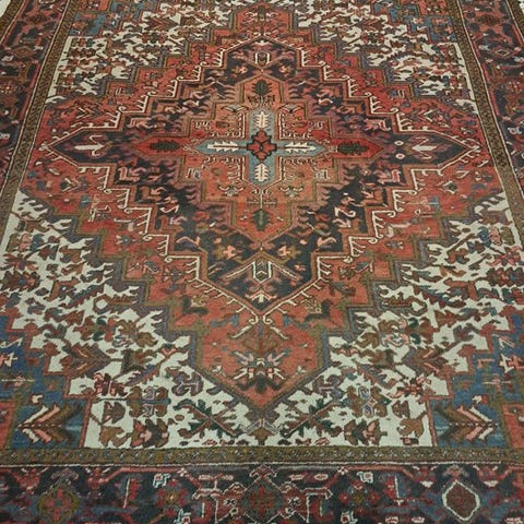 der tilbydes et håndknyttet Heriz orientalsk tæppe fra Indien.