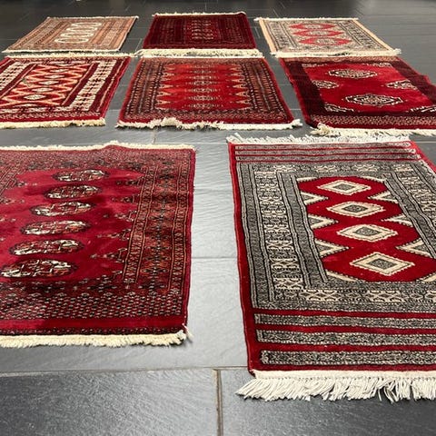 Oprindelsesland: Pakistan; Modell: (2 stk) Buchara - håndvævet - uld - tæppe af høj kvalitet - Pakistan. Klik på den blå "gå til varen" knap, for at købe eller byde på denne vare. Den samlede pris vil blive vist inden du afgiver dit bud.